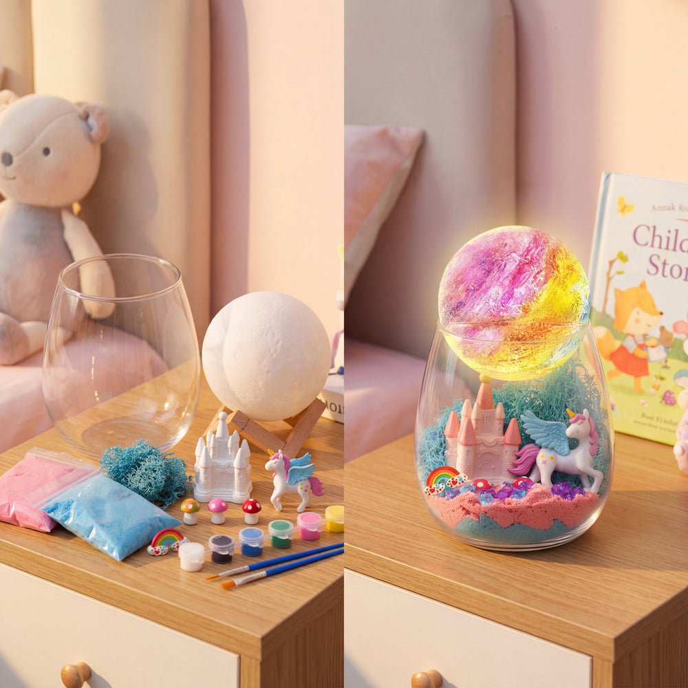 Nasz kompletny zestaw DIY to nie tylko zabawka, ale kreatywne zajęcie, które odciąga od ekranów i pozwala dziecku samodzielnie stworzyć magiczną, funkcjonalną lampkę nocną.